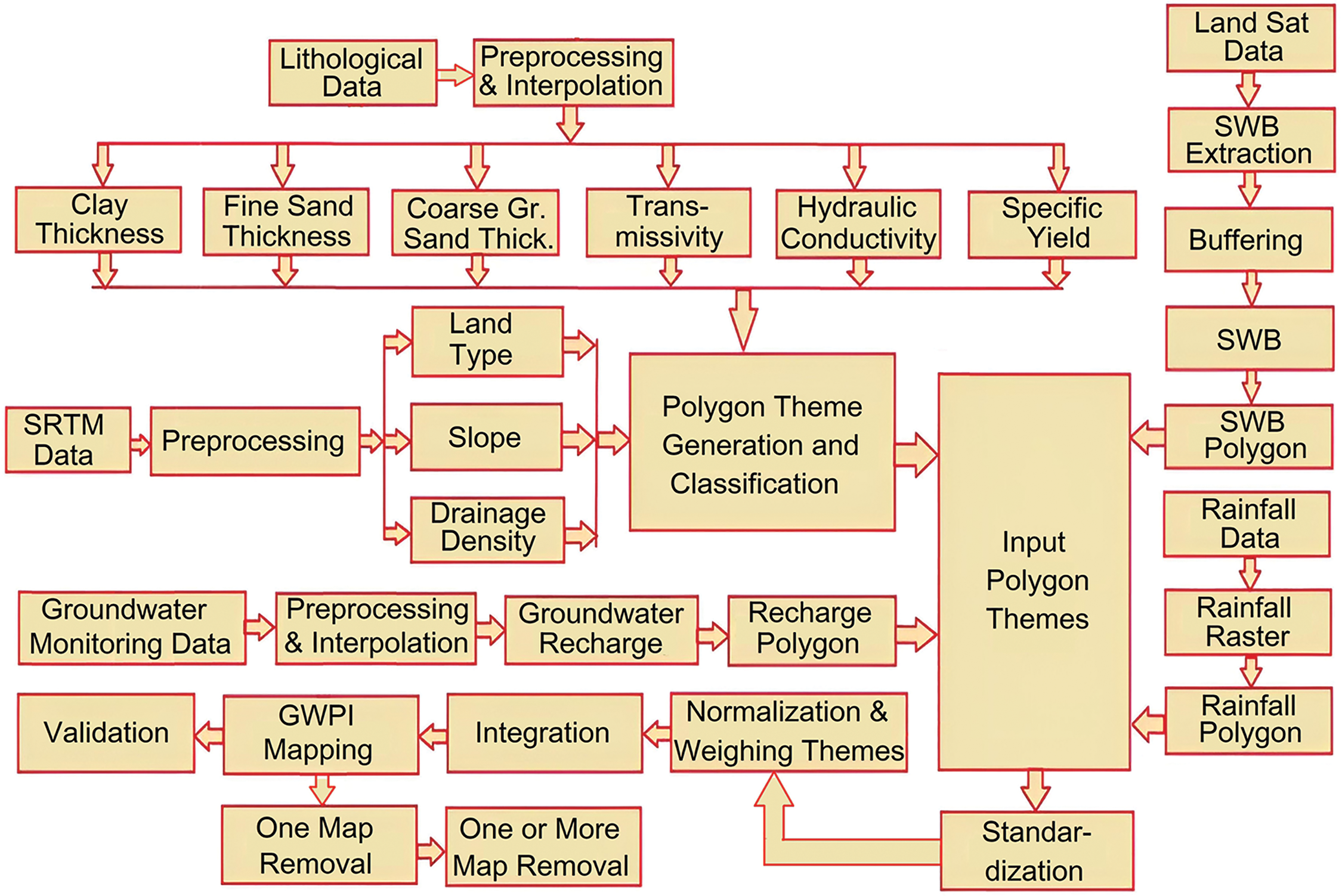 To evaluate groundwater potential, the groundwater system as a whole is considered as a system, while all the themes were treated as sub-systems.