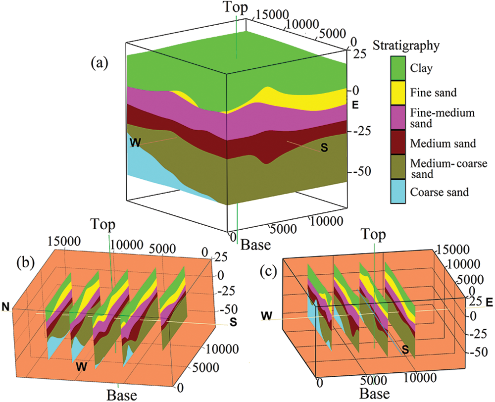 Understanding an aquifer’s potential to transfer groundwater is crucial for assessing its water supply capacity. Estimating aquifer transmissivity allows for a more thorough evaluation of the hydrogeological properties of the aquifer [20]. The aquifer’s transmissivity (T) can be estimated utilizing (3): (3)T=∑(Kibi)where bi and Ki represent ith layer’s unit thickness and hydraulic conductivity, respectively. In this study, the hydraulic conductivity for different formations was adopted from Morris and Johnson [21], as shown in Table I.